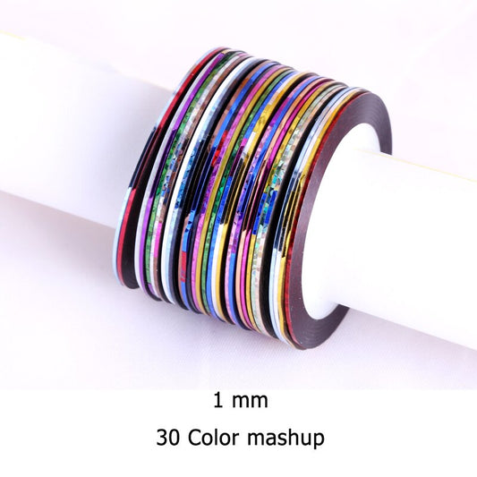 30pcs Nail Art Striping Stickers Tape Metallic Yarn Line 3D Nail Decals Rolls Design DIY Manicure Foil Decoration Accessories