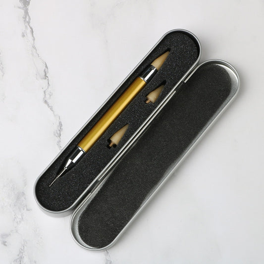 Dual-ended Nail Art Dotting Pen Set With 2 Replaced Heads Rhinestone Beads Studs Picker Wax Pencil Brush Nails Art Tools