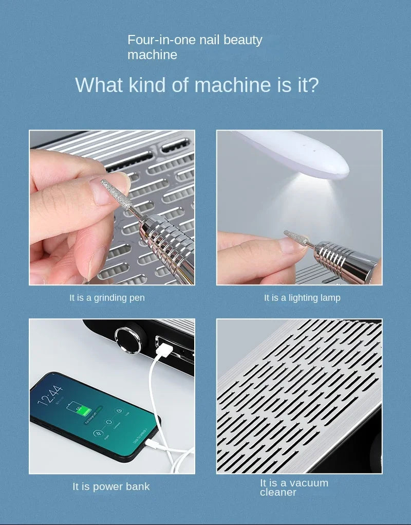 4 in 1 Nail Drill Professional RECHARGABLE Aspirateur + ventilateur 80W Dust Collector Big Suction Acrylic Nails Extractor Brushless Vacuum Cleaner