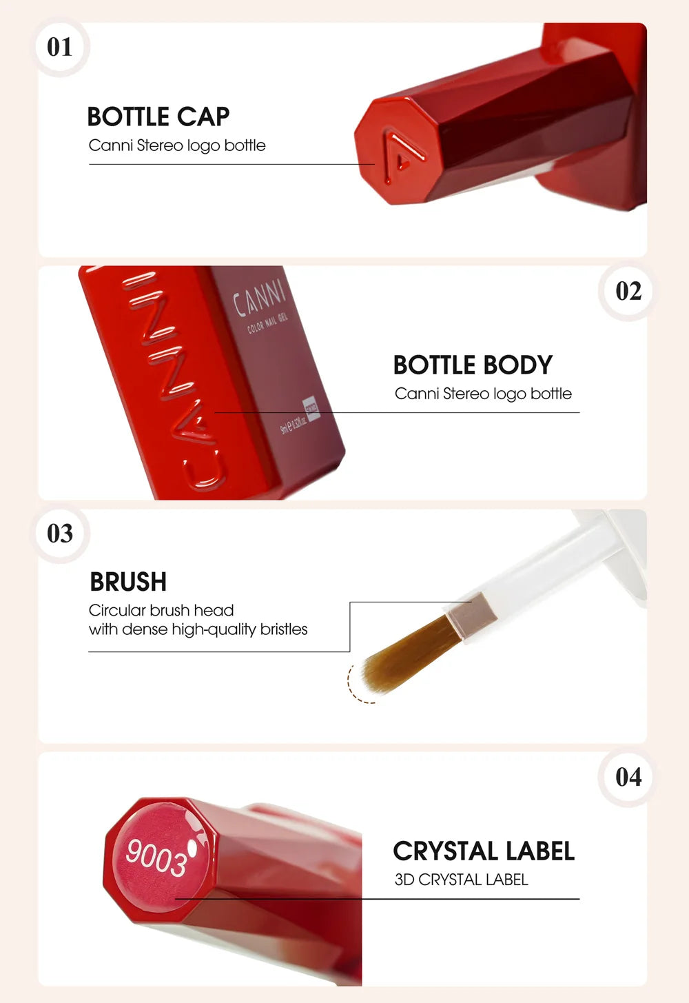 Canni HEMA FREE Nail Gel Polish using step :dehydrator- primer - base coat - color coat gel - top coat