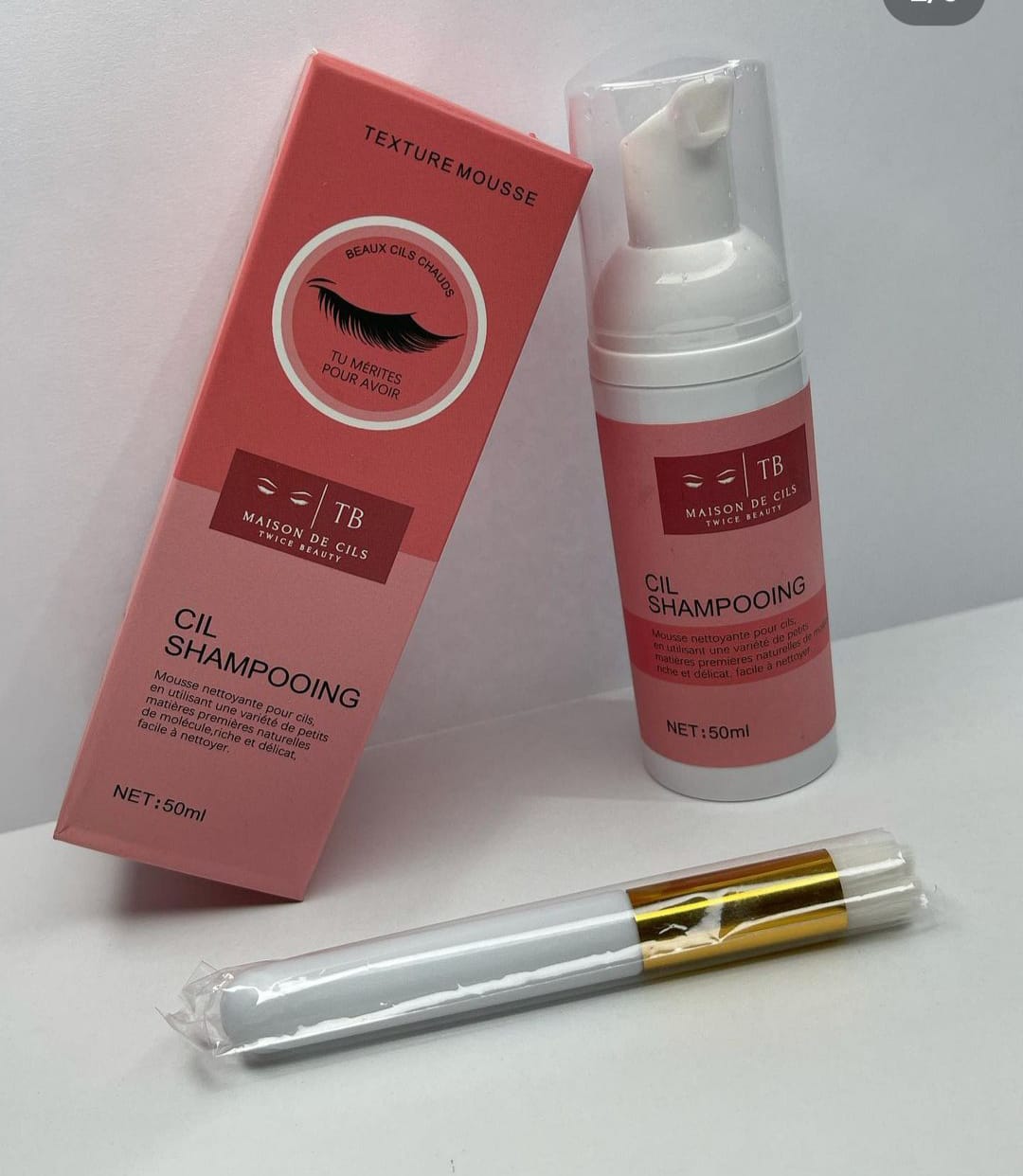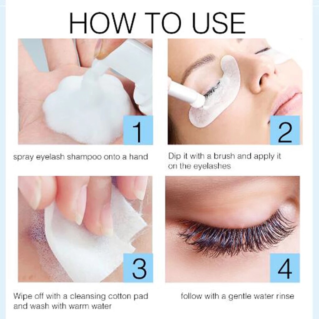 مجموعة تنظيف الرموش مع فرشاة تنظيف الرغوة لتمديد الرموش ، شامبو رمش مزيل المكياج Kit de nettoyage des cils avec brosse de nettoyage à mousse Extension de cils individuelle colle shampooing cils démaquillant