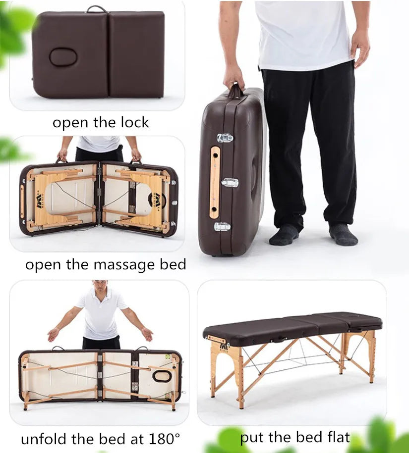 Mobilier de salon de beauté en cuir et bois, lit de table de massage, salon de beauté, spa, ongles, tatouage, sac, oreiller, visage, portable, mode