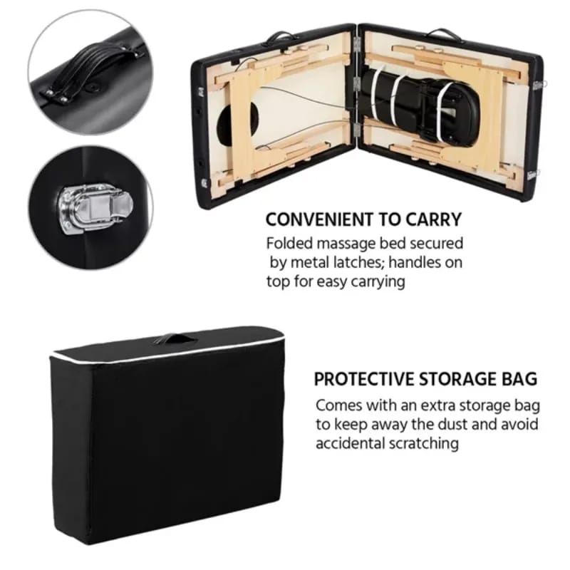 Lit de beauté pliant 180 cm longueur 60 cm largeur Tables de Massage Spa portables professionnelles pliables avec sac سرير تجميل قابل للطي بطول 180 سنتيمتر وعرض 60 سنتيمتر طاولات تدليك سبا محمولة احترافية قابلة للطي مع حقيبة أثاث صالون خشبي