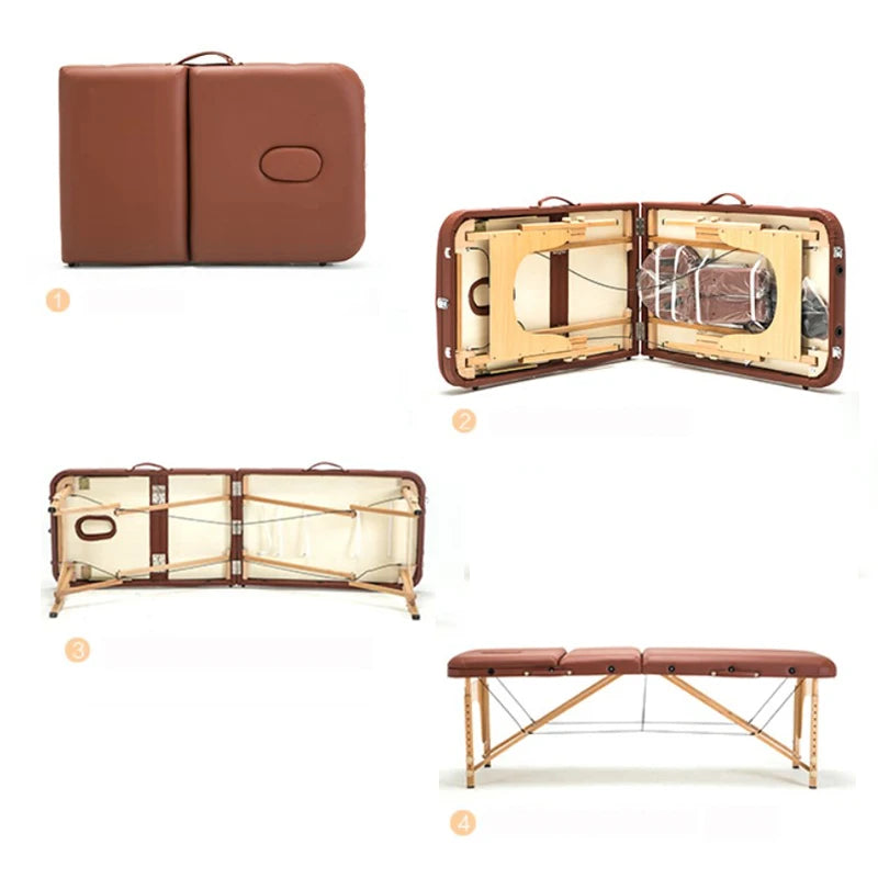 Salon Furniture Leather Wooden Tattoo Spa Beauty Massage Bed Table With Patio Facial U Shaped Headrest Foldable Adjustable
