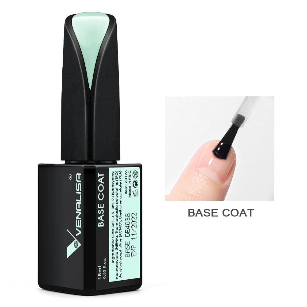 VENALISA 15ml Gel Nail Polish Base, Top Coat No Wipe Gel Polish High Gloss Long Lasting LED